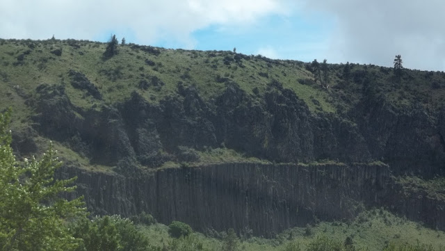 You can just see the bottoms of the basalt palisades along the route. Vertical columns of rock...